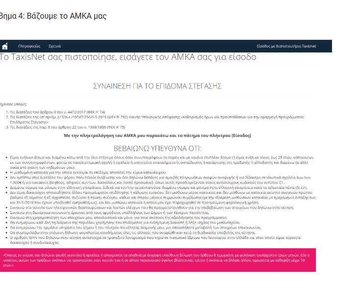 Η πλατφόρμα για το στεγαστικό επίδομα είναι παρόμοια με την πλατφόρμα για το ΚΕΑ και το Κοινωνικό Μέρισμα.
