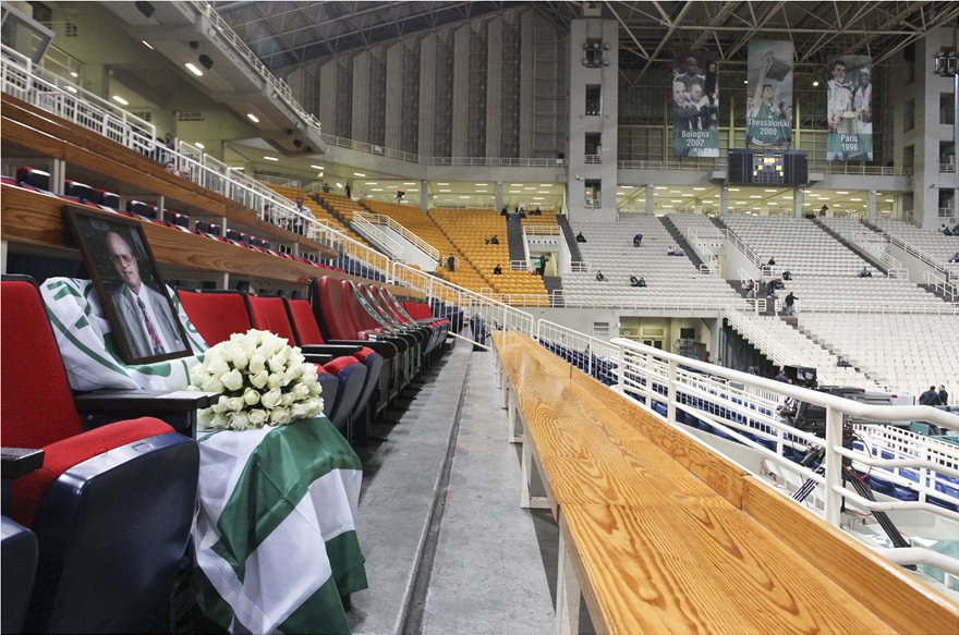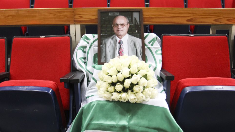 Το κλίμα είναι βαρύ στο ΟΑΚΑ και εκτός από τα λουλούδια που τοποθετήθηκαν στην καφετέρια του γηπέδου, το ίδιο έγινε και στη θέση που συνήθιζε να κάθεται ο θρυλικός παράγοντας στα επίσημα του κλειστού.