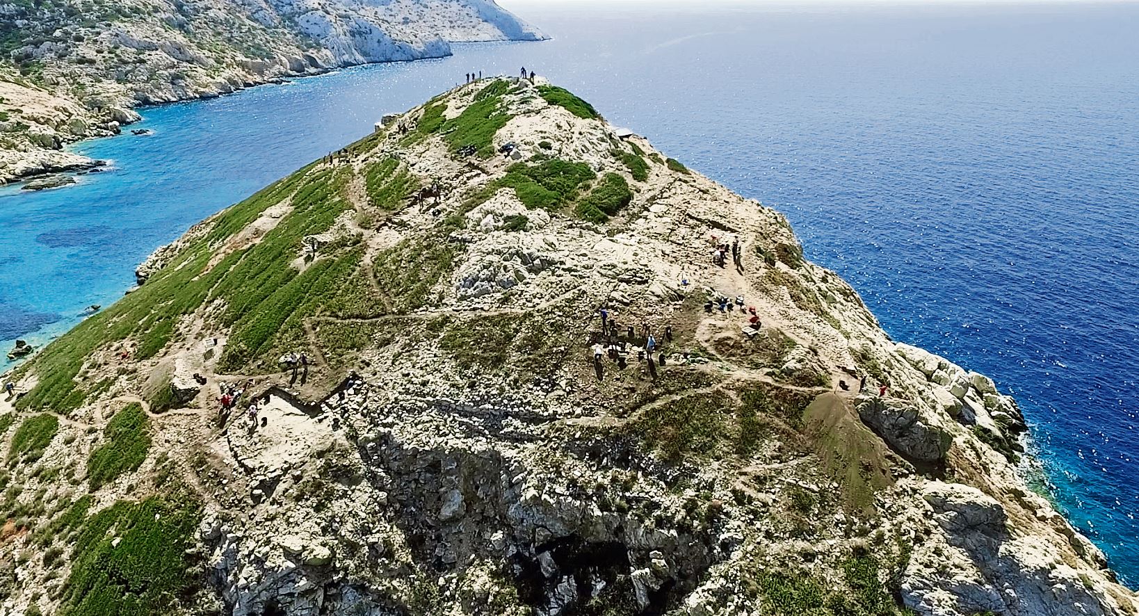 Κάθε ξημέρωμα η ομάδα έφτανε με καΐκι από το Κουφονήσι, όπου διέμενε, και έπαιρνε το δυσανάβατο, φιδωτό, στενό μονοπάτι που ξεκινούσε από το μικρό αυτοσχέδιο ντόκο, ανηφορίζοντας προς την κορυφή. Ο ένας πίσω από τον άλλον, 60-70 άνθρωποι που είχαν φτάσει εδώ από όλες τις μεριές του πλανήτη. Αρχαιολόγοι, αρχιτέκτονες, επιστήμονες εξειδικευμένοι στη γεωμορφολογία και τη γεωχημεία, καταξιωμένοι καθηγητές, φοιτητές (στο πλαίσιο του Προγράμματος υλοποιήθηκε με την υποστήριξη του Ινστιτούτου Κύπρου εκπαιδευτικό πρόγραμμα διδασκαλίας σύγχρονων ανασκαφικών μεθόδων) και αφοσιωμένοι εργάτες.
