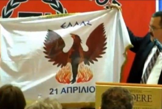 Η εκδήλωση εκείνη είχε μείνει για μέρες στην επικαιρότητα, καθώς ο υπαρχηγός της Χρυσής Αυγής Χρήστος Παππάς είχε ξεδιπλώσει μέσα στην αίθουσα του ξενοδοχείου ένα λάβαρο της χούντας με τον Φοίνικα και τον στρατιώτη.