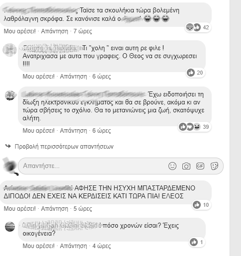 «Τελικά τα σχόλια για τη φοιτήτρια από αυτούς που τη γνωρίζουν λένε ακριβώς το αντίθετα από αυτά που λένε οι γονείς της. Ακούγεται ότι εκδιδόταν και μάλιστα και με λαθρομετανάστες. Δεν μπορώ να καταλάβω τον λόγο… που κάποιοι πέφτουν τόσο χαμηλά. Κρίμα για την κατάληξη της… Να διευκρινίσω ότι λυπάμαι πολύ για την κατάληξη, δεν αξίζει σε κανέναν τέτοιο τέλος και λυπάμαι να ακούω για τέτοια πράγματα το όμορφο νησί μας το οποίο είναι φιλήσυχο. Έχει πάρει λάθος δρόμο η κοινωνία μας. Πολύ λάθος»
