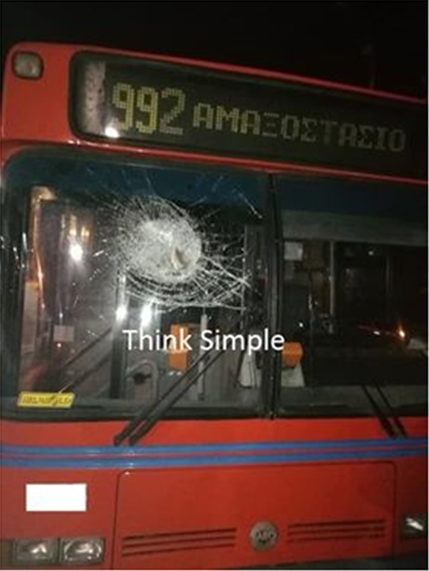 Άγνωστοι πέταξαν πέτρες στο λεωφορείο, το οποίο ήταν άδειο από επιβάτες, καθώς είχε ολοκληρωθεί η βάρδια και ο οδηγός όδευε προς το αμαξοστάσιο Σταυρούπολης.