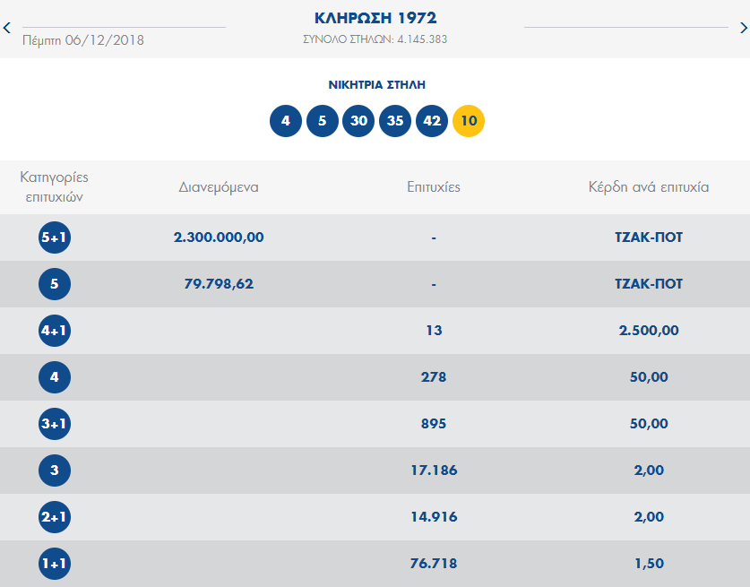 Πραγματοποιήθηκε χτες βράδυ, 6/12/2018, η κλήρωση των τυχερών αριθμών για το Τζόκερ, σημειώνοντας Τζακποτ.