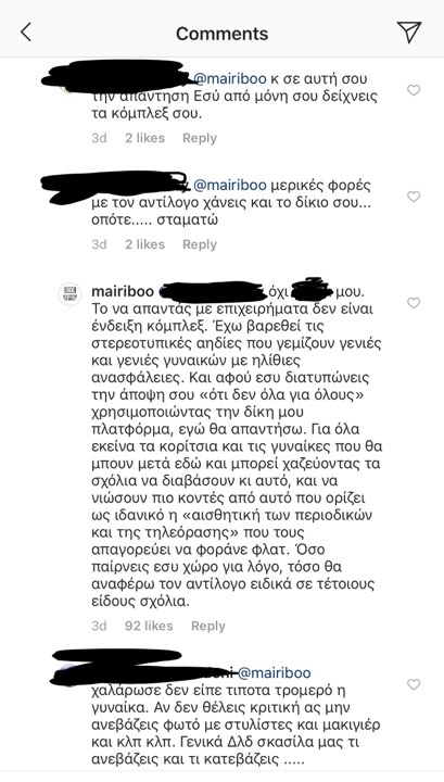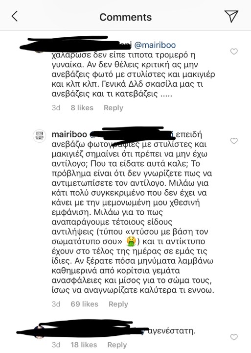 Τα σχόλια που δέχτηκε και η αντίδρασή της