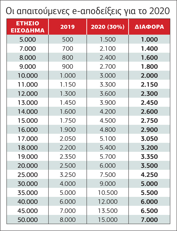 Οι φορολογούμενοι θα πρέπει να συλλέγουν αποδείξεις από συναλλαγές μέσω πιστωτικών καρτών ίσες με το 30% του καθαρού εισοδήματός τους.