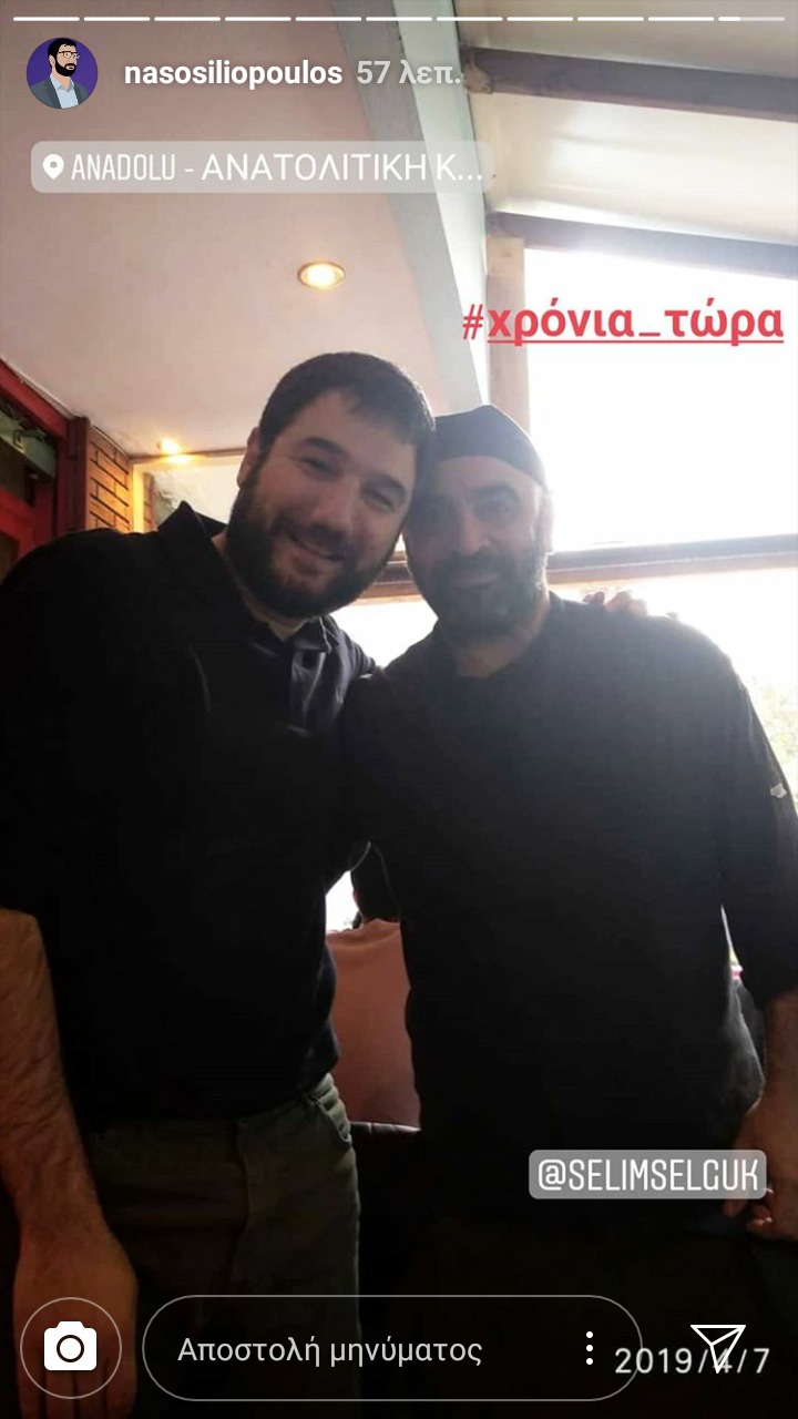 Ο Νάσος Ηλιόπουλος ανάρτησε στο Instagram μία φωτογραφία, όπου βρίσκεται στο μαγαζί του Σελίμ, το «Anadolu», αγκαλιά με τον μάγειρα.