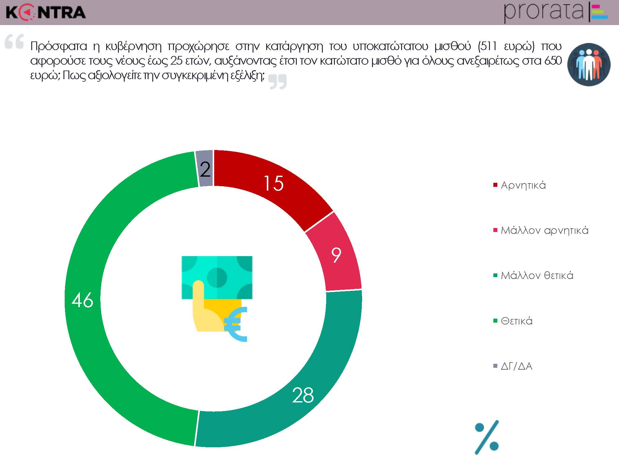 Το 74% χαρακτηρίζει θετική η κατάργηση του υποκατώτατου μισθού, ενώ το 24% αρνητική)