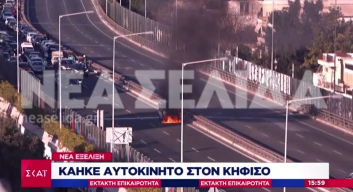 Κάηκε αυτοκίνητο στον Κηφισό (video)