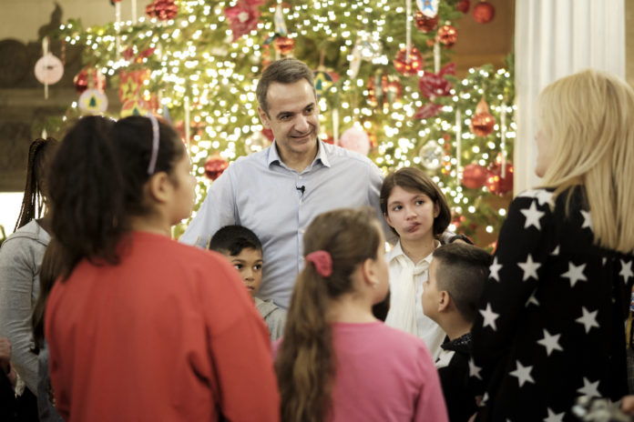 Μητσοτάκης: Στόλισε χριστουγεννιάτικα το Μαξίμου με παιδιά της «Κιβωτού του Κόσμου»